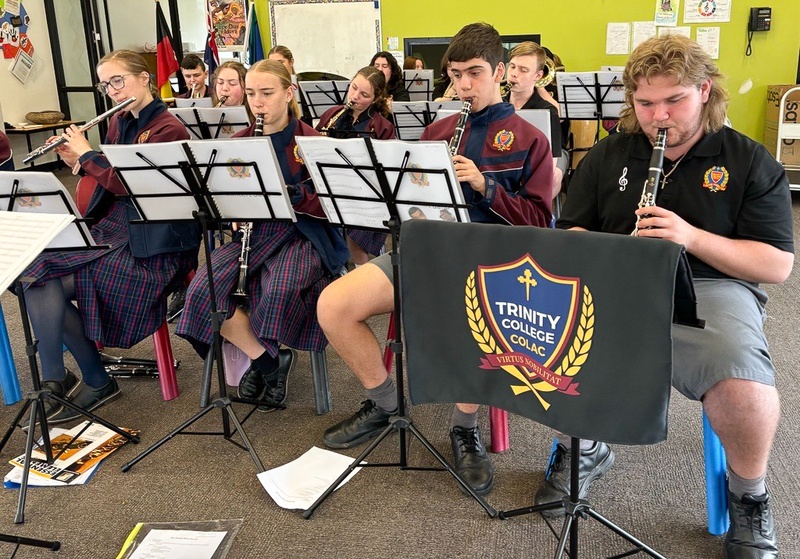 Last Thursday, the Concert Band and Junior Band musicians gathered together to perform at Birregurra Primary School. The students started the morning at school attending their usual classes before gathering at the Jubilee Centre in Lesson 2 to get their many instruments. Then they all departed on a minibus to Birregurra Primary.