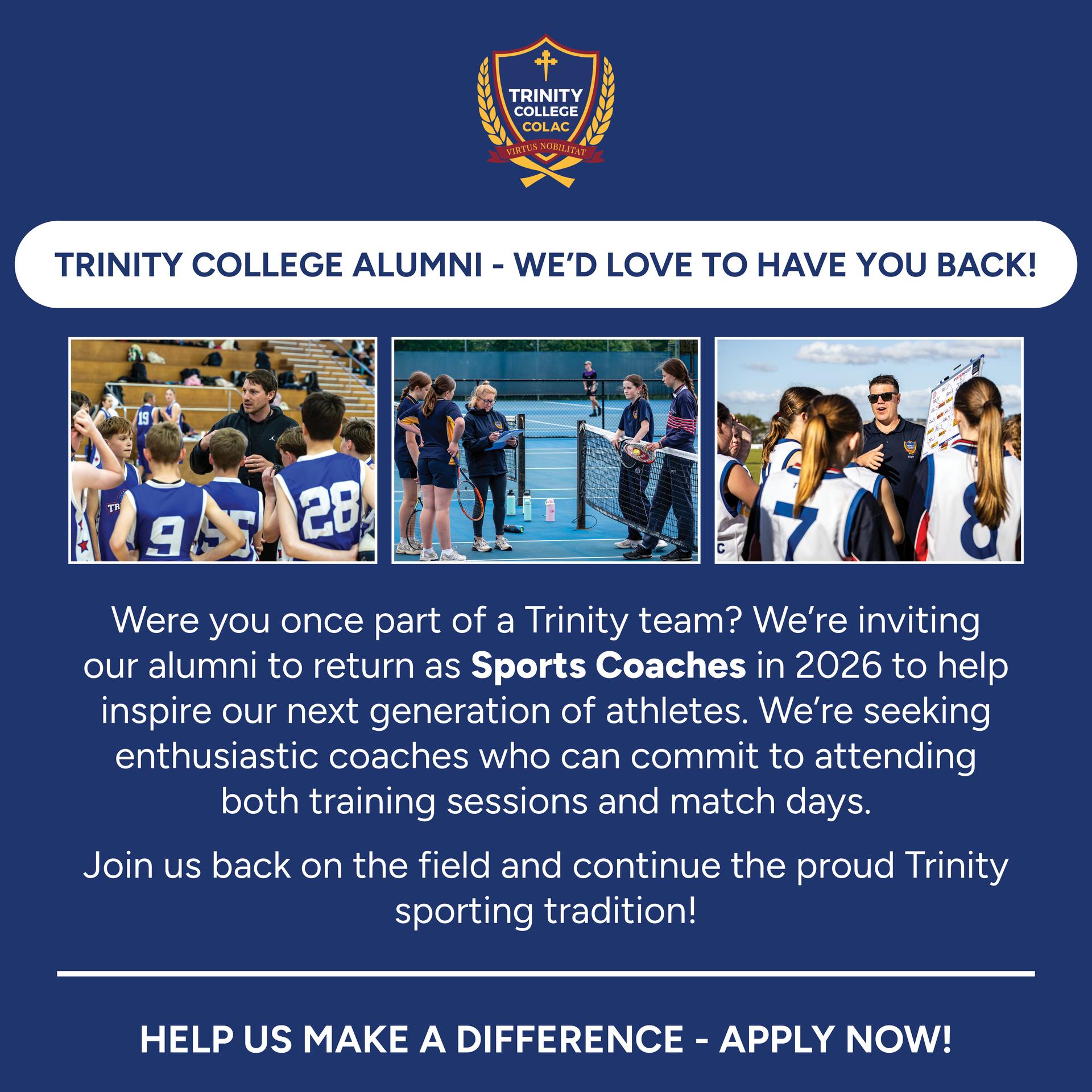 Join us back on the field and continue the proud Trinity sporting tradition!